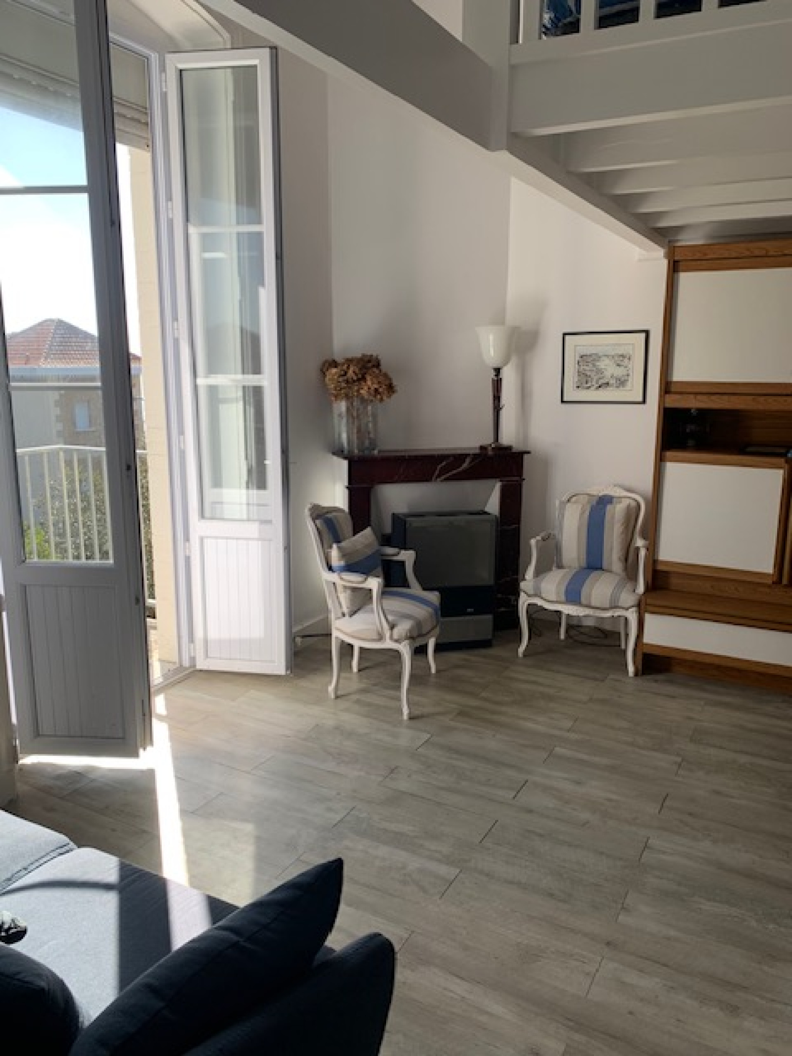 Dans un hôtel particulier sur terrain boisé, au calme, Appartement T2 vue mer avec accès direct à la plage. Au 1er niveau d'un bâtiment de 2 étages avec beaucoup de cachet, cet appartement est constitué d'un séjour avec mezzanine, une chambre de 13m², entrée, Kitchenette et SDE, wc séparé. Toutes les pièces donnent sur un beau balcon de 10m² Sud avec vue mer. En bon état, il necessitera qq travaux de rafraichissement,